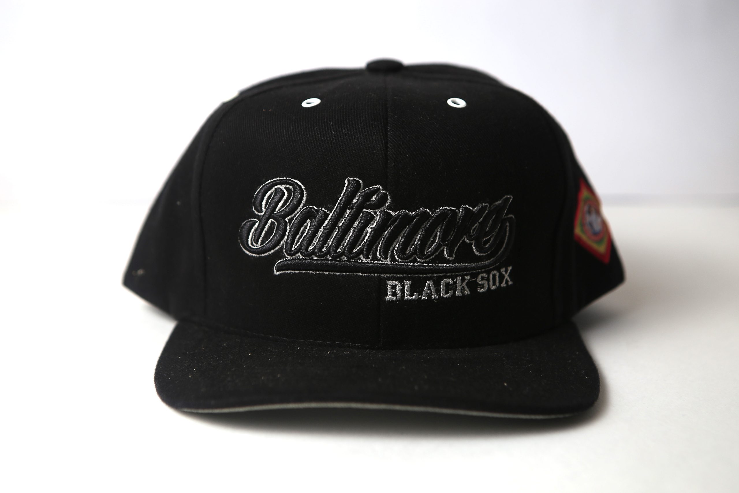 Boné snapback preto com bordado “Baltimore Black Sox” em estilo vintage. Design clássico com aba reta e visual esportivo urbano.